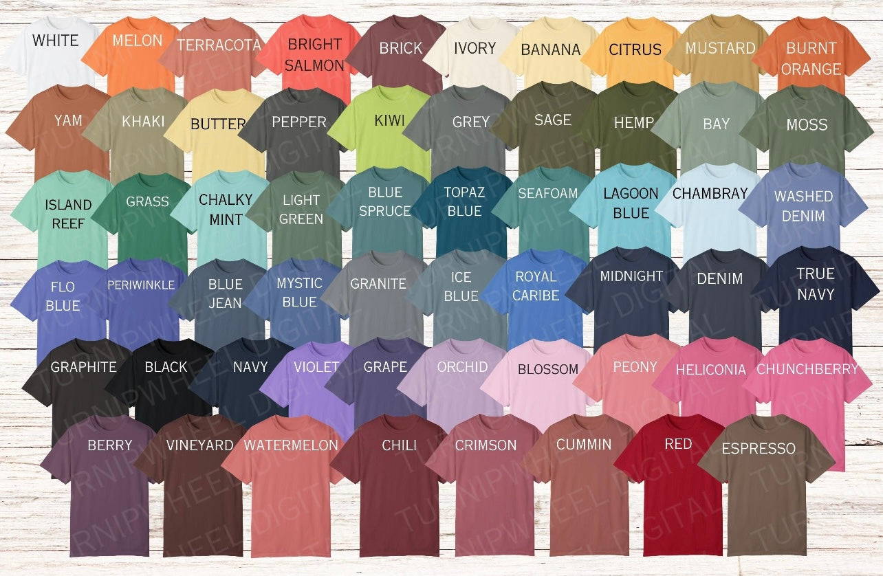 Pictured is comfort color tee color granite
